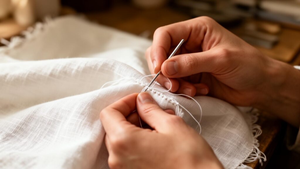 Our shrouds are handcrafted across a network of artisan villages, moving from one master craftsperson to the next. By collaborating with regional weavers, printers, and embroiderers, we honor ancestral traditions and ensure these ecological textiles are shaped with slow, intentional care. Every piece is a journey through the hands of those who keep these crafts alive.